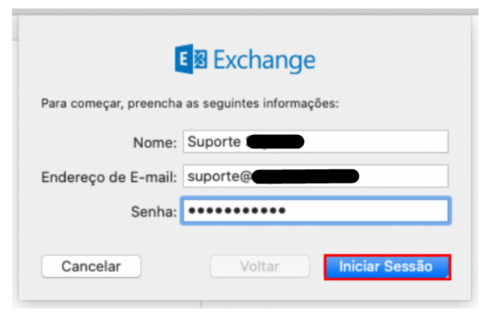 Informe o Nome, o Endereço de E-mail e clique em Iniciar Sessão: